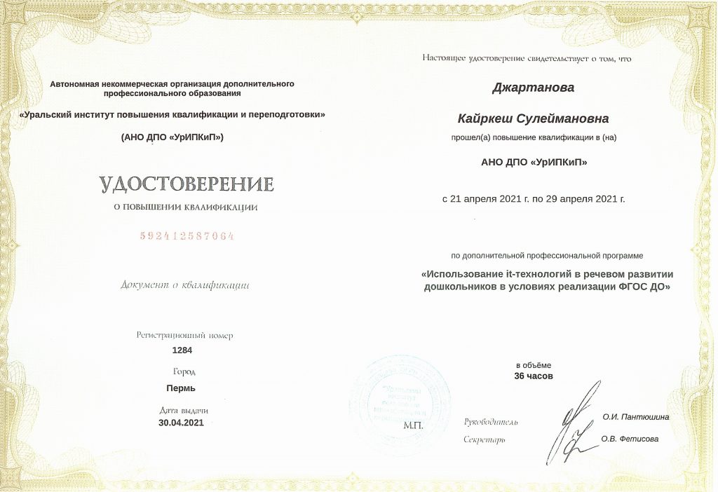 Джартанова Кайркеш Сулеймановна